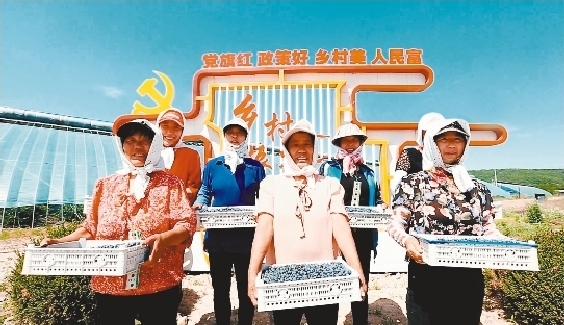 岫岩县洋河乡村振兴产业基地农民喜获丰收。